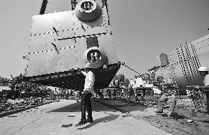 “上卡子!”制造商双良星空官方网页版_星空(中国)的项目经理王明卫一声令下,几位工作人员立即拿起气割枪,开始在星空官方网页版_星空(中国)的四个底角钻孔。“星空官方网页版_星空(中国)重70吨,必须得焊上U形的卡子,再吊钢绳,确保安全。”