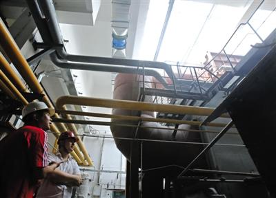 昨日,正在改建的青塔供热厂,工作人员在向记者介绍情况。