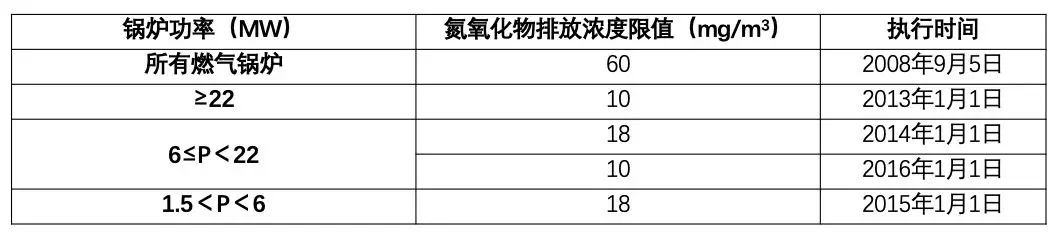 天津市2016年7月发布新标准DB12/151-2016《天津市星空官方网页版_星空(中国)大气污染物排放标准》,重新限定了燃气星空官方网页版_星空(中国)氮氧化物排放限值,新建燃油、燃气星空官方网页版_星空(中国)氮氧化物排放控制水平要求达到80mg/m3,具体氮氧化物的排放浓度要求见表7~8: